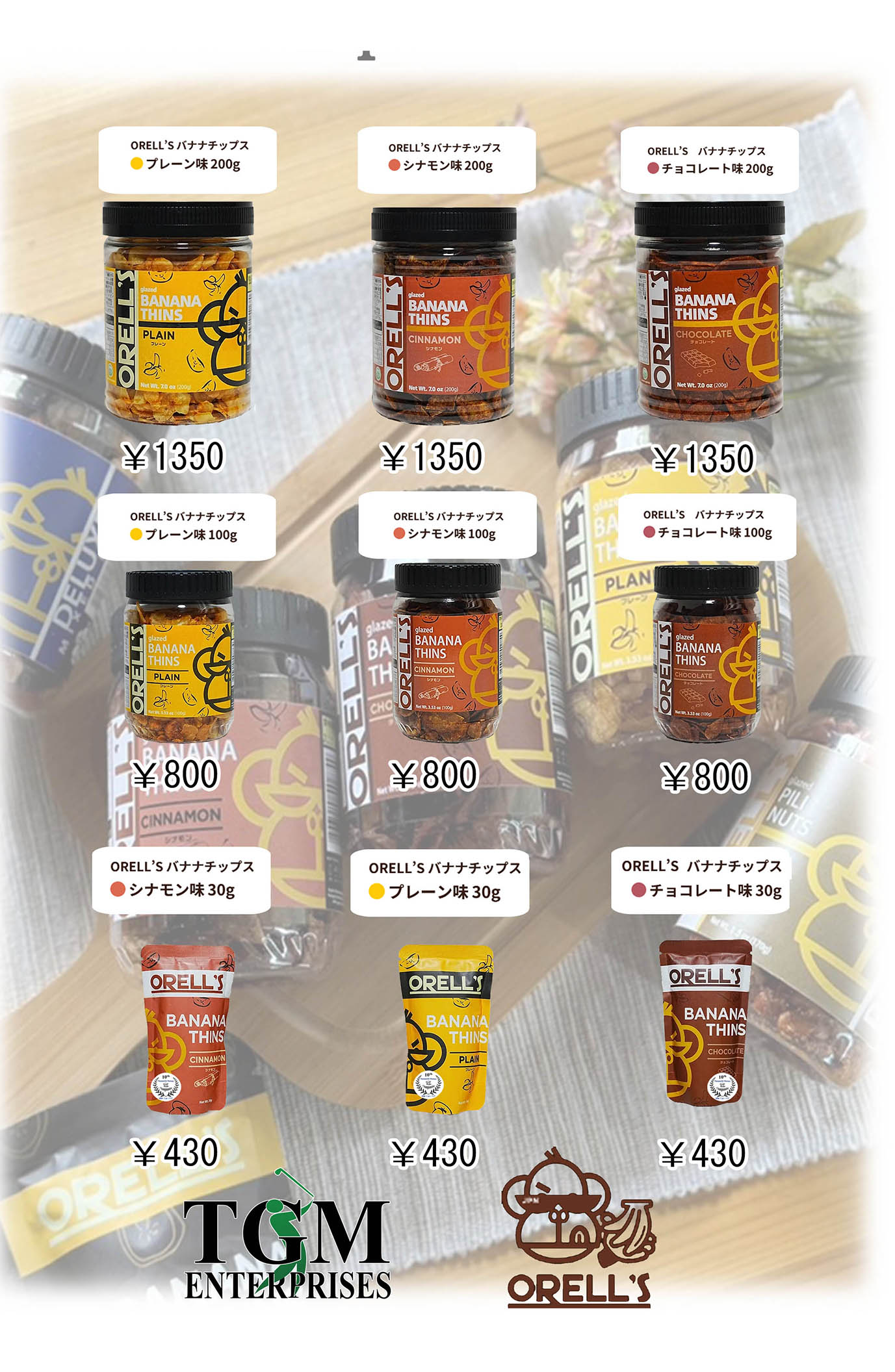 日本初上陸のバナナシンズORELL`S(オレルス)様よりバナナチップスの販売を開始いたしました。